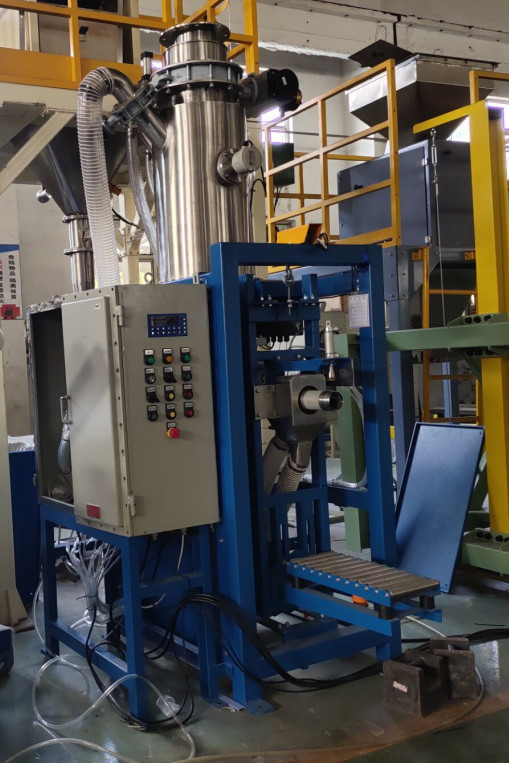 В это время, проверки системы отправляет ли зажимное приспособление сумки в предопределенном государстве, когда упаковывая сумка была зажата, система сигнал управления раскрыть разгружая дверь веся ведра, и материал входят в упаковывая сумку.