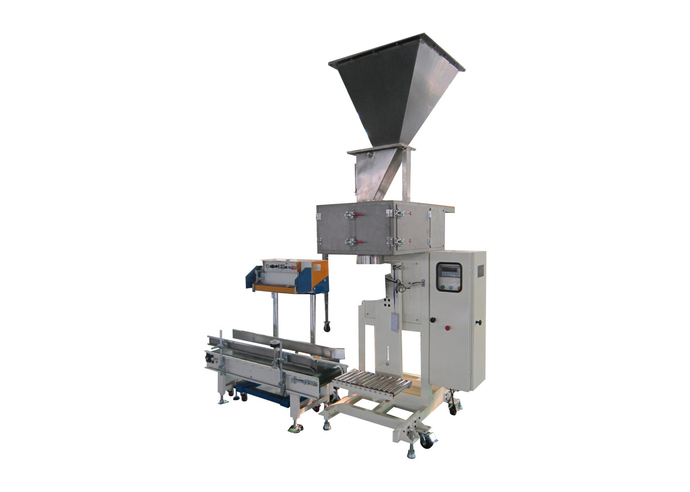 Электронный пакуя масштаб состоит из весить блок, швейную машину, конвейерное устройство, пневматическую систему, систему удаления пыли, количественный пакуя контроль, etc. весь веся процесс проконтролирован PLC и завершен автоматически.